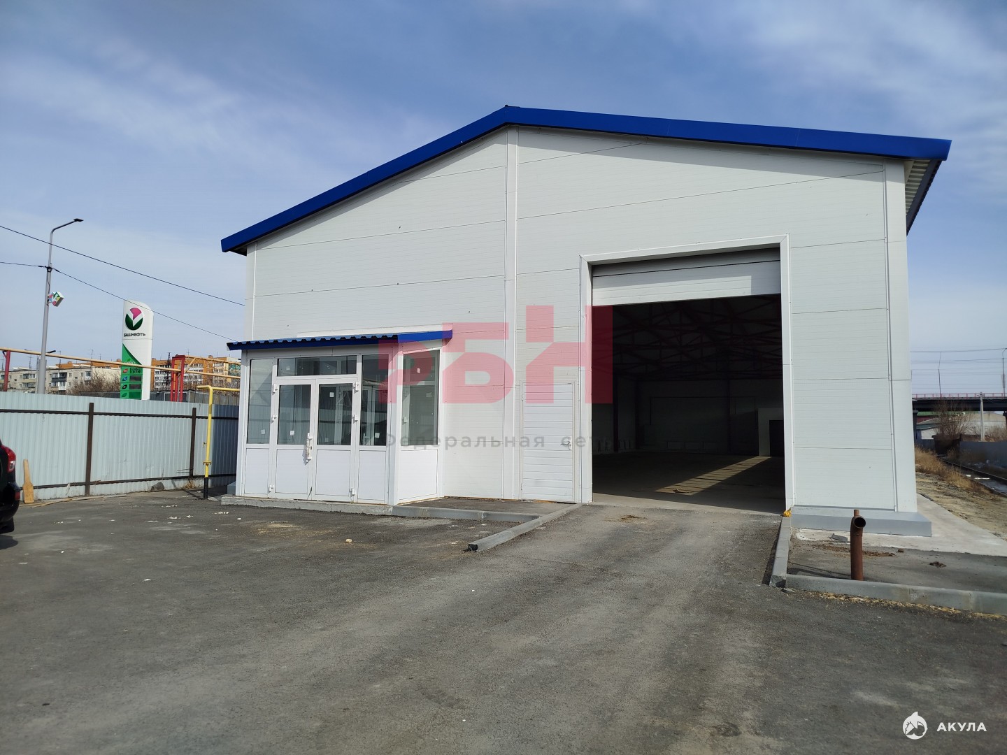 хороший подъезд к зданию, большая асфальтированная парковка;