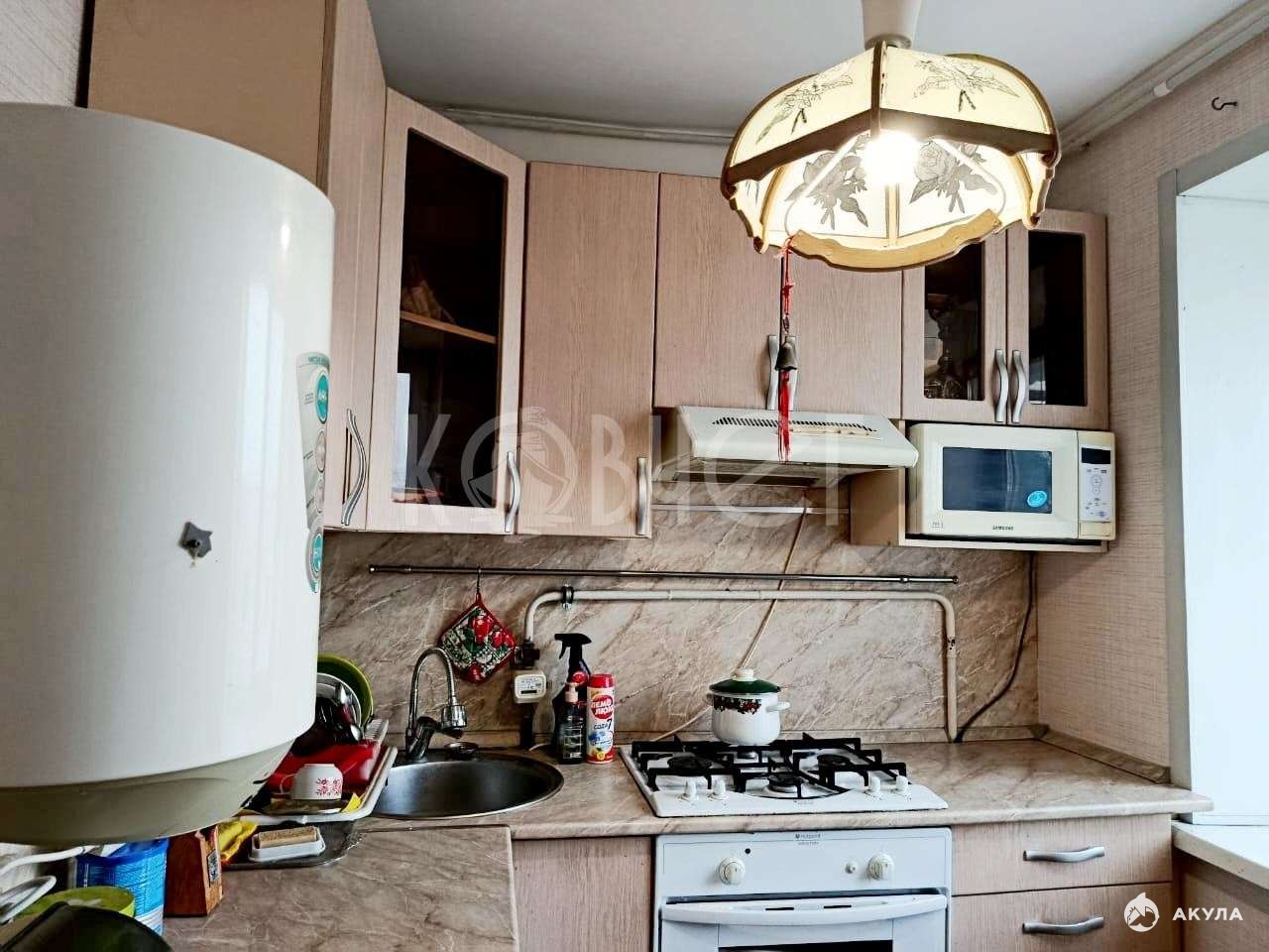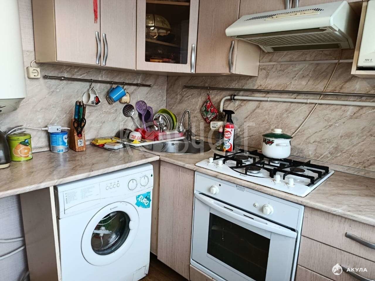 Покупателям при продаже остается кухонный гарнитур, шкаф и кровать в спальне, а также техника: варочная газовая поверхность, духовой шкаф, стиральная машина, водонагреватель, вытяжка.
