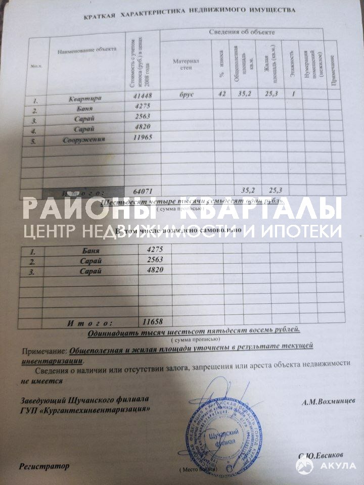 Участок не обрабатывался 2 года. Растут плодовые деревья: яблоня, груша, вишня. Дом 35, 2 м² —Материалы: брусПластиковые окнаОтопление печное.Водоснабжение – скважина, в дом не заведено.